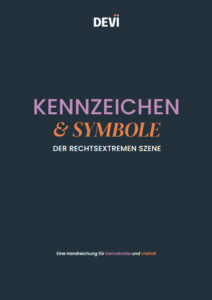 Diese 36-seitige Broschüre gibt einen Überblick über die in der rechtsextremen Szene verwendeten Codes, Symbole und Lifestyleprodukte. Sie wird vom DEVI e.V. im Rahmen des Projektes „OSZ für Demokratie und Vielfalt“ herausgegeben. Sie können die Broschüre formlos per Mail (kontakt@devi.berlin) kostenlos bestellen. Zur Broschüre bieten wir auch Fortbildungen in unterschiedlichen Formaten an.